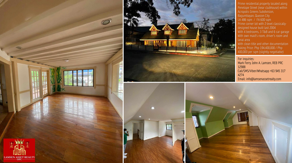 486 sqm Acropolis Greens Subdivision Quezon City House and Lot for Sale